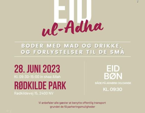 Det Islamiske Trossamfund i Danmark og Muslimsk Ungdom i Danmark – København (@munidadk) har glæden af at invitere jer til fejringen af Eid ul-Adha onsdag d. 28. juni in shaa Allah, og det afholdes i Rødkilde Park, København NV 🌙